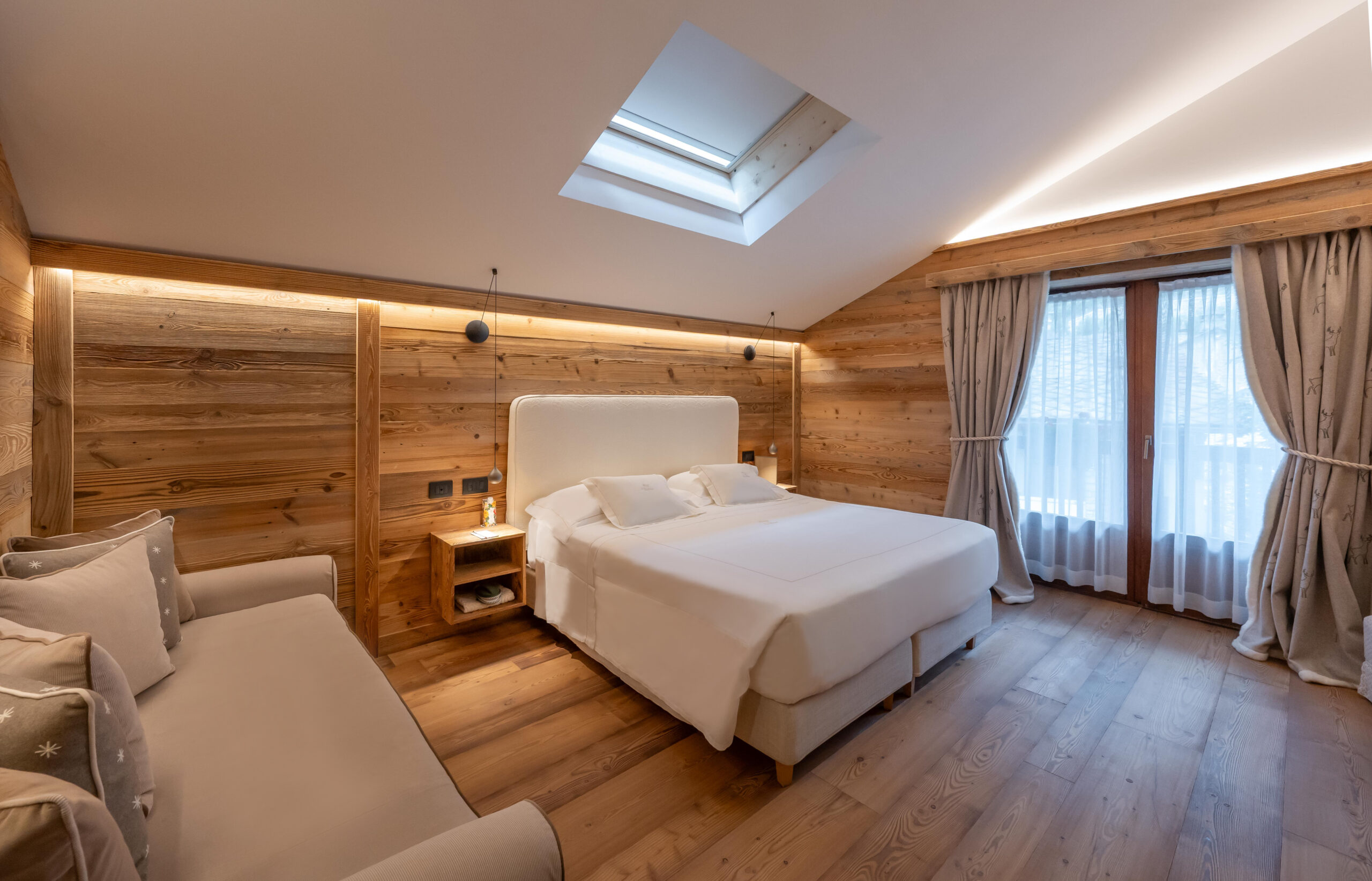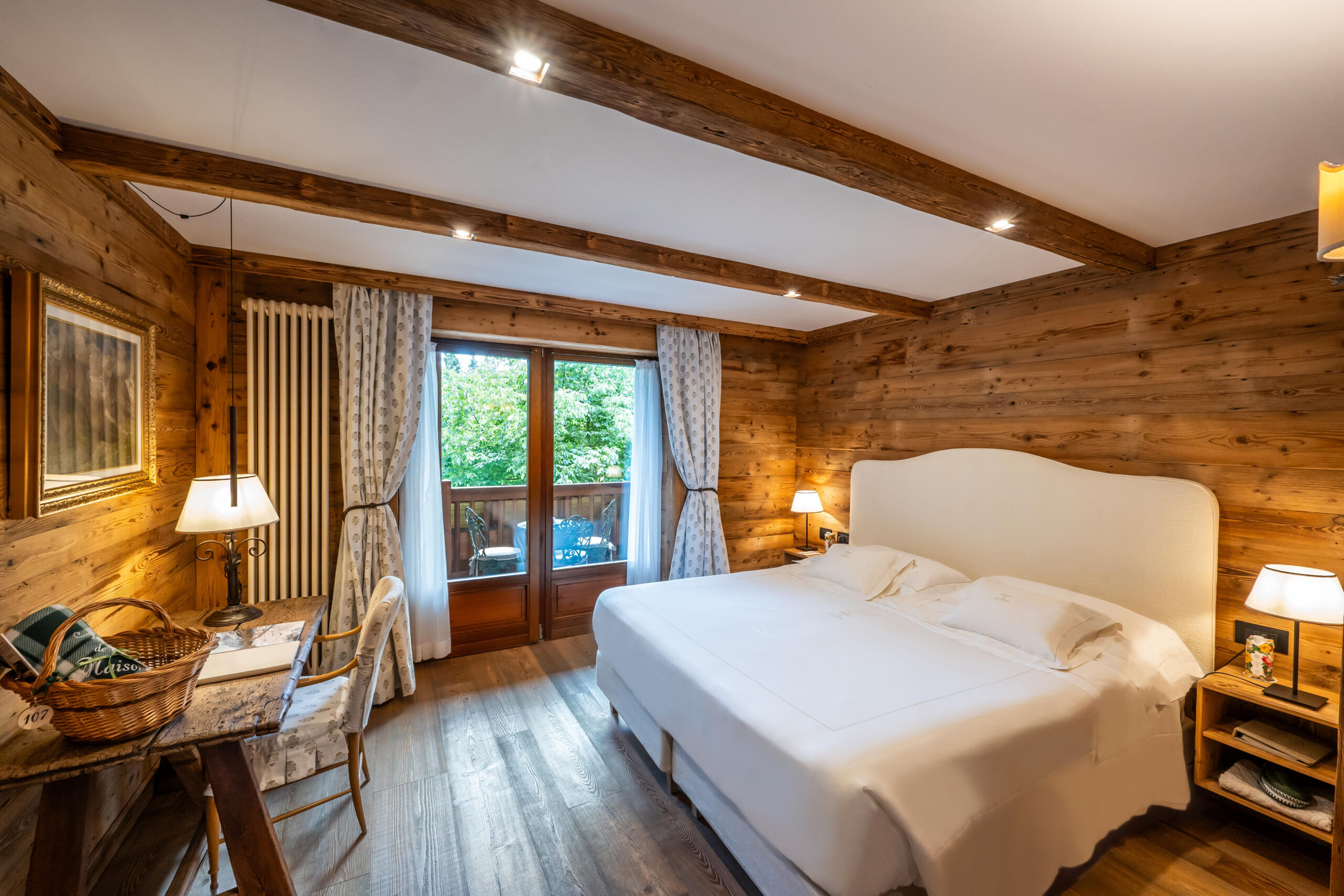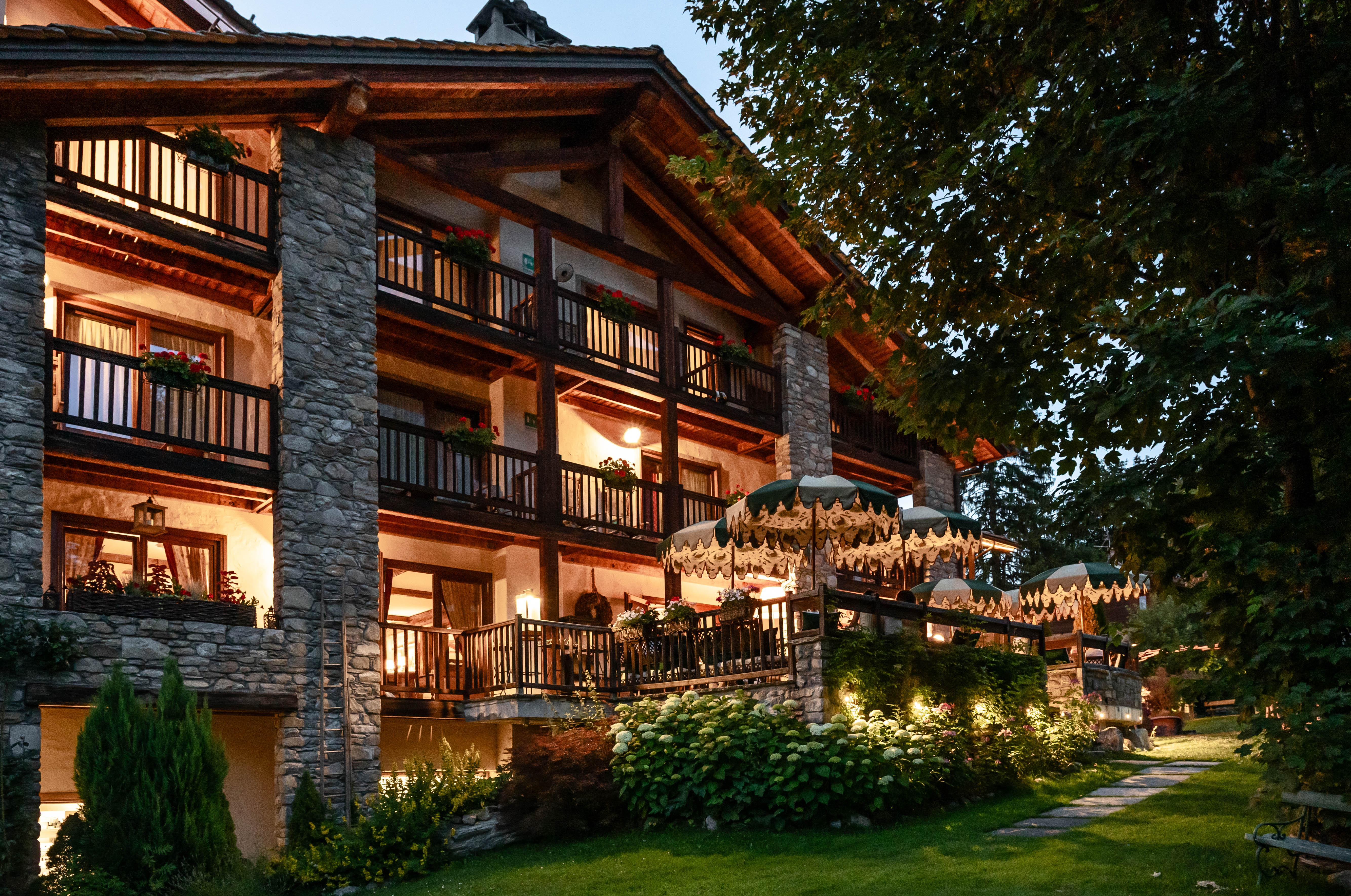 Le 33 camere sono tutte affacciate su una natura scenografica e curate nei dettagli. Ognuna ha una storia da raccontare, tra tessuti pregiati, mobili della tradizione valdostana, pezzi di antiquariato, quadri incantevoli. La Maison de l’eau, la spa dell’hotel, è un rifugio di benessere alpino, con piscina riscaldata interna ed esterna che affaccia sul Monte Bianco, spa privatizzabile, sauna, bagno turco e sale dedicate al relax. Il Ristorante L’Aubergine, aperto anche agli Ospiti esterni, è un esempio della ricercatezza con cui la famiglia Garin caratterizza tutti i servizi di ospitalità. L’incantevole sala ha una vetrata che affaccia sulla natura circostante e in inverno, pur ascoltando il suono del camino che scoppietta, sembra quasi di mangiare all’aperto.